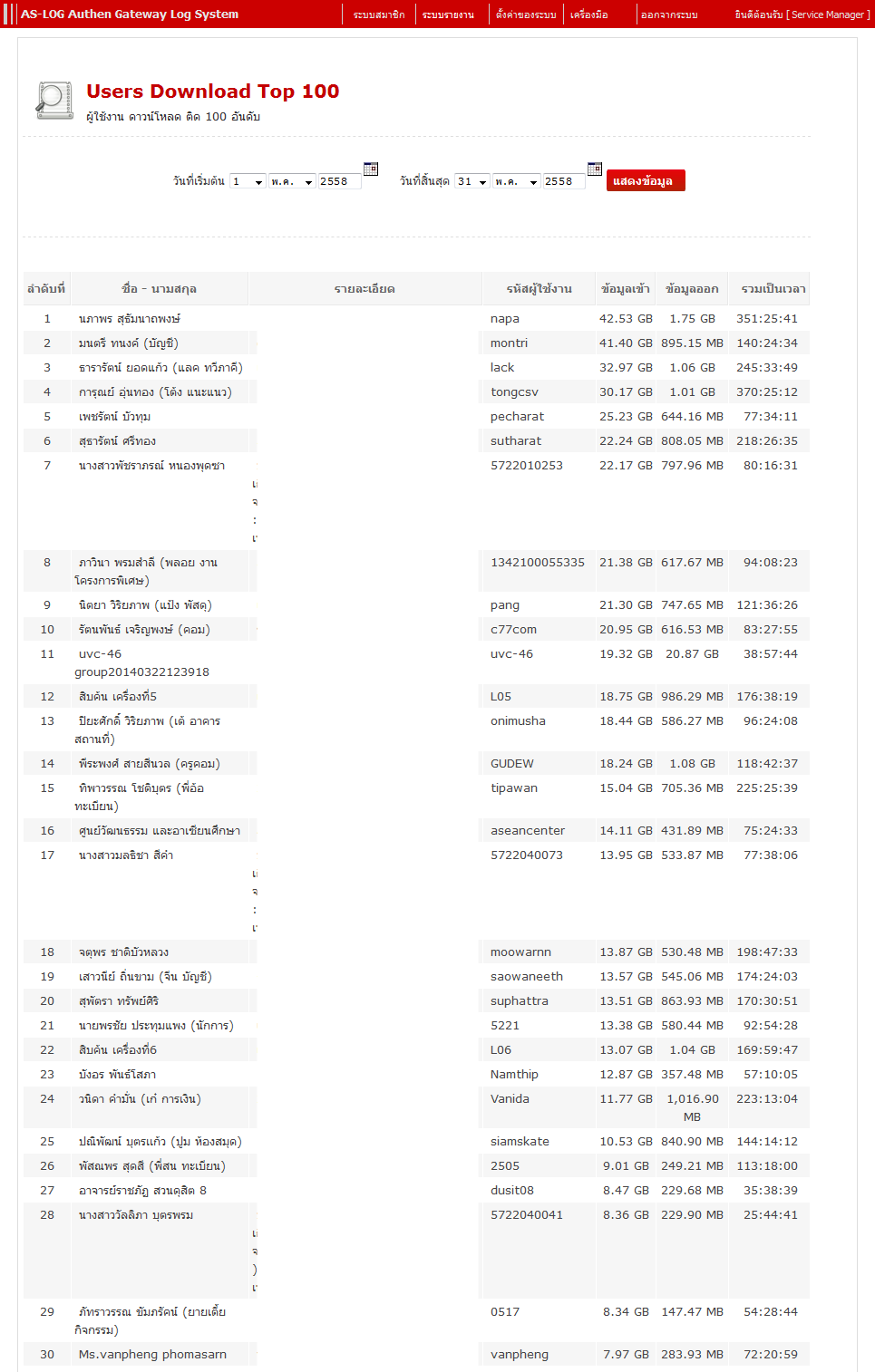 สถิติการใช้งานระบบเครือข่ายอินเตอร์เน็ต ปี 2558