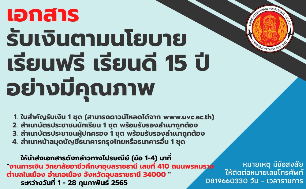 - อาชีวะอุบลฯ จัดรายการวิทยุกระจายเสียง ในรายการ “รวมใจไทอุบล” ทาง สวท.อุบลฯ