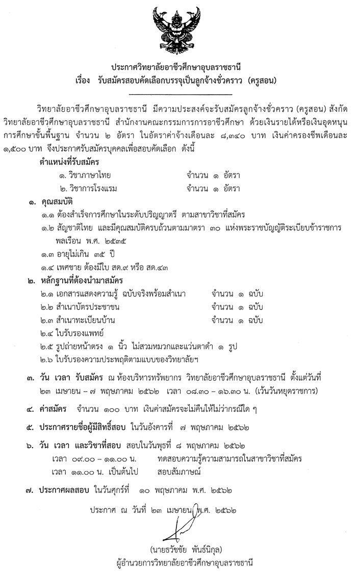 ประกาศวิทยาลัยอาชีวศึกษาอุบลราชธานี